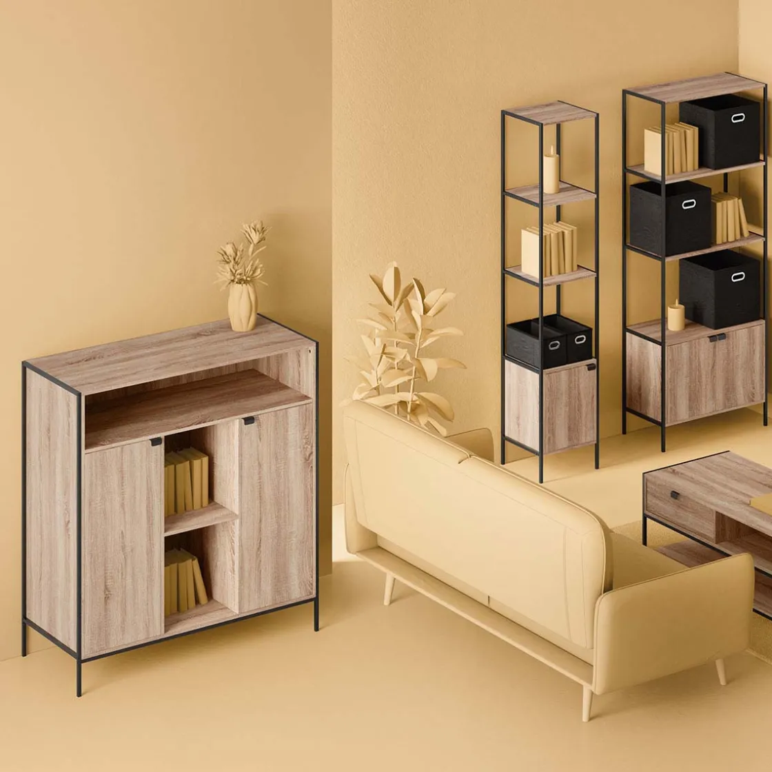 5five Buffet 2 portes, Effet chêne naturel