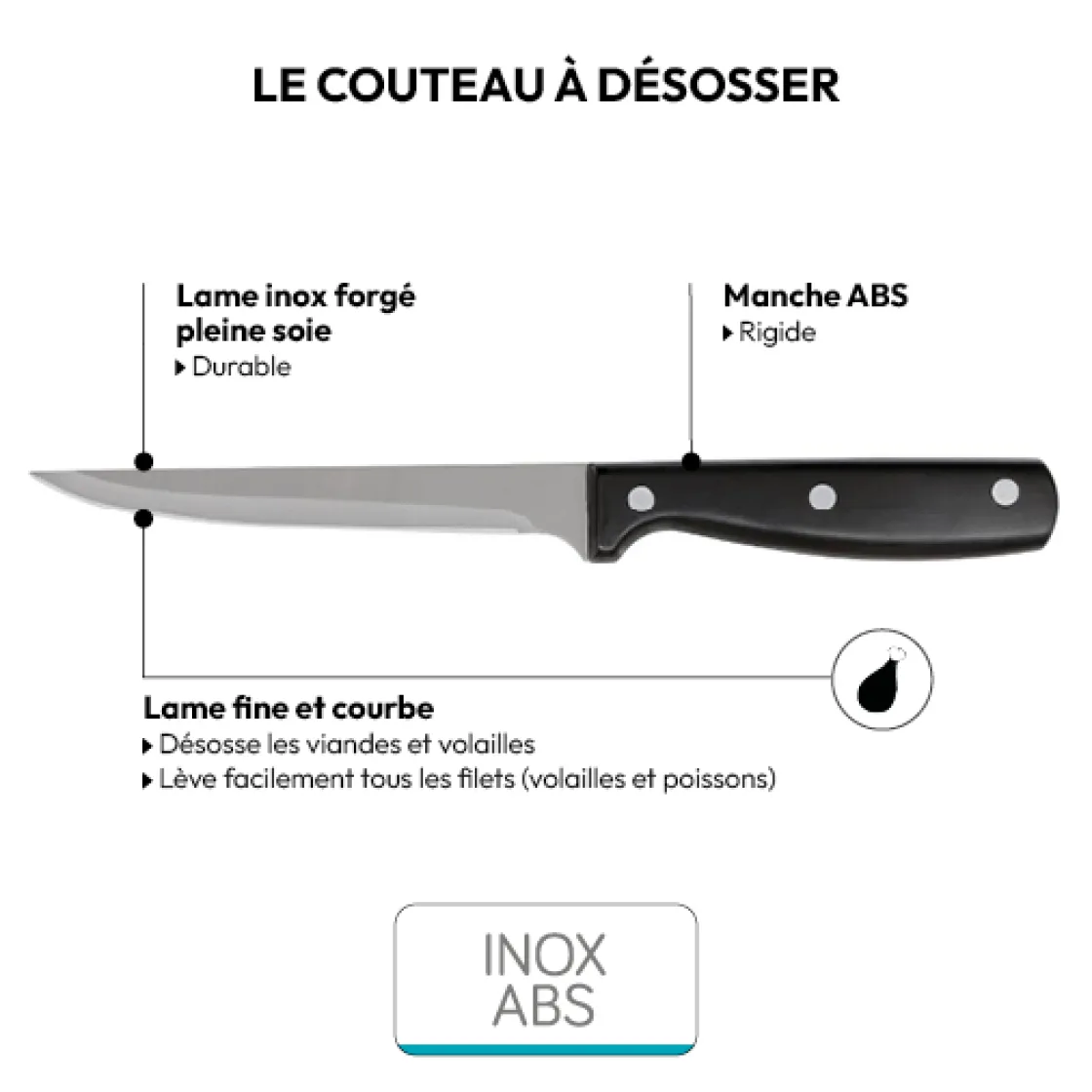 5five Couteau à désosser inox – lame 15cm