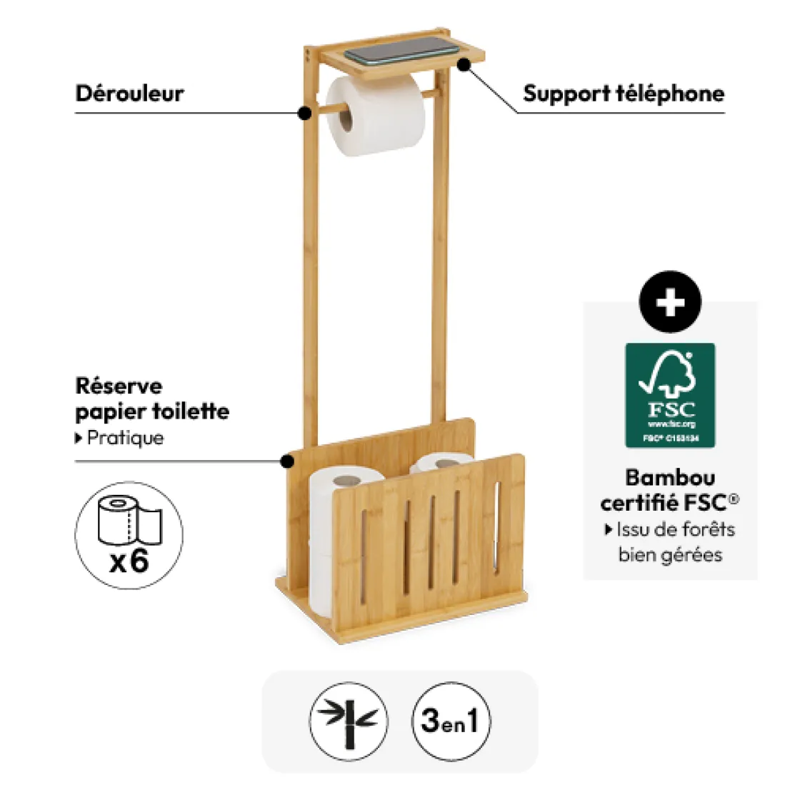 | Matière du tube porte-rouleau | Bambou |