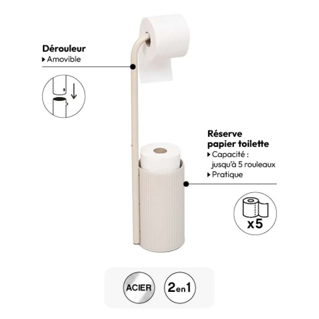 5five Dérouleur avec réserve papier toilette, Lin