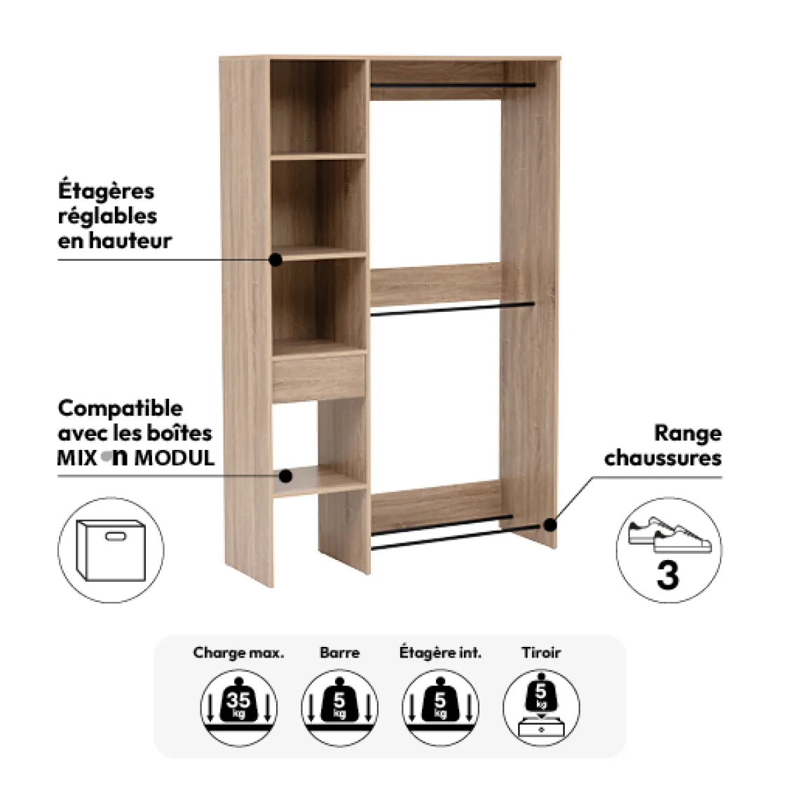 5five Dressing 2 penderies, Effet chêne naturel