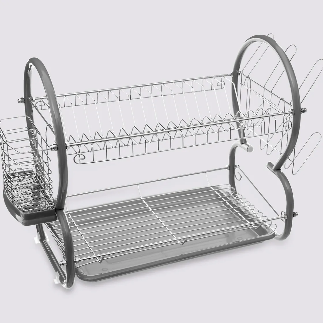 5five Égouttoir métal 2 niveaux avec plateau, Gris