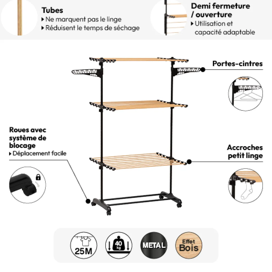 5five Étendoir à linge tour roues 25m