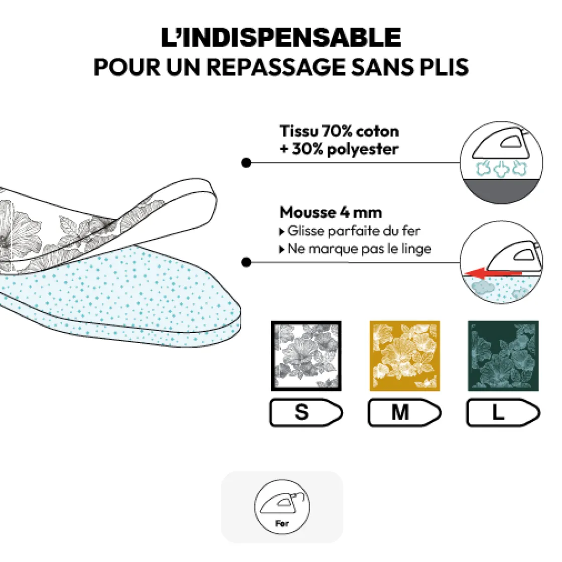 5five Housse à repasser 2 couches S, Blanc