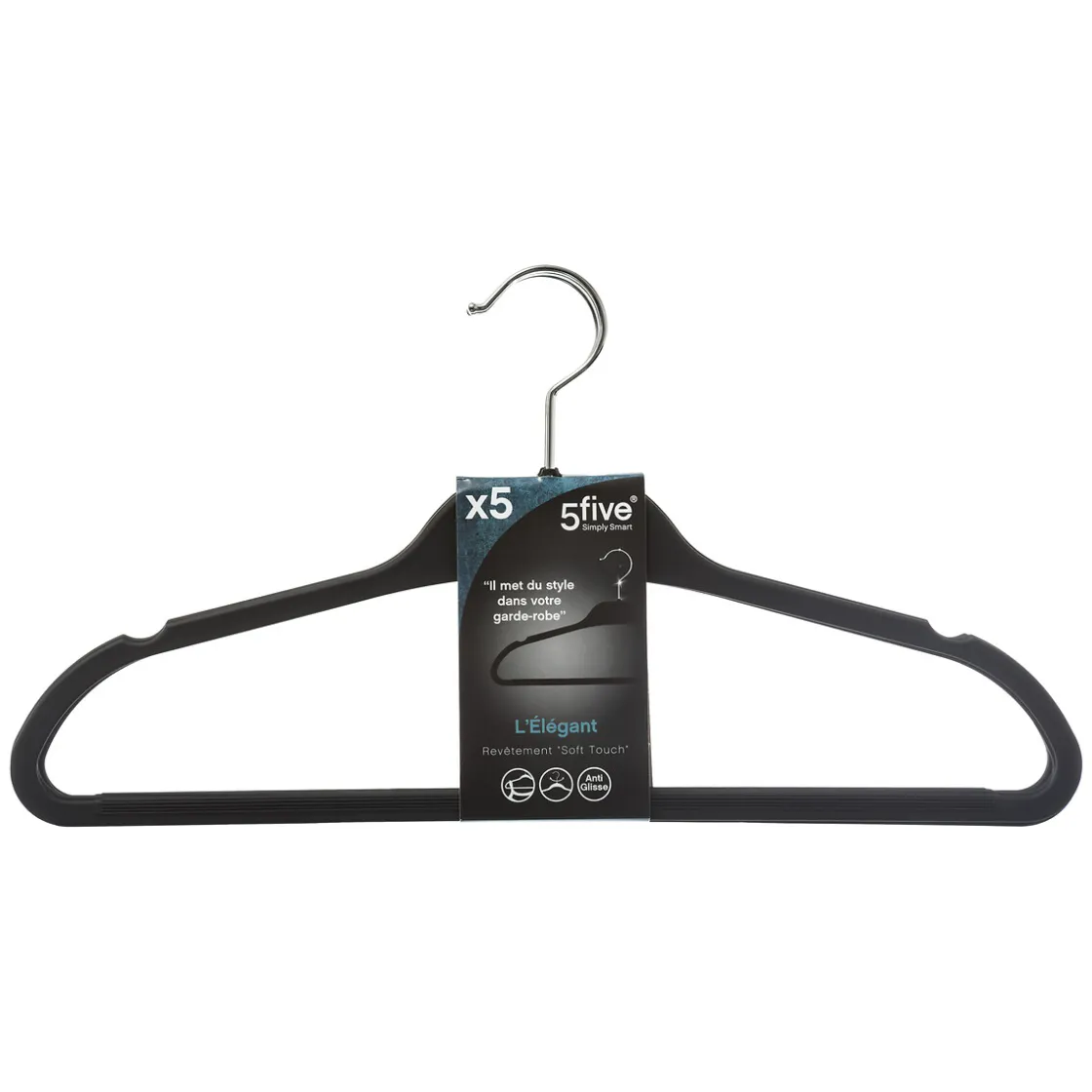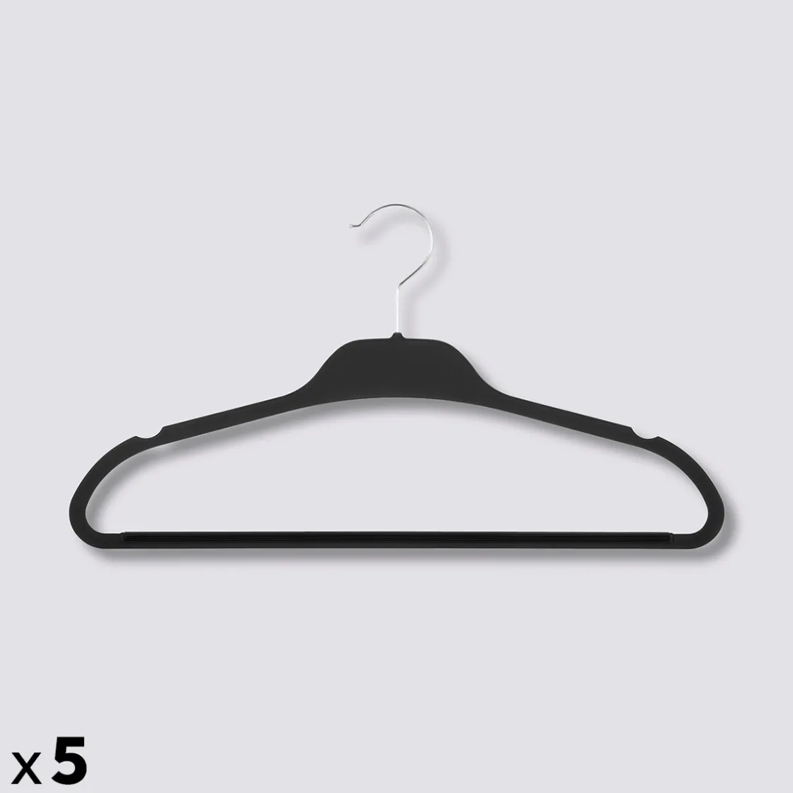 5five Lot de 5 cintres antidérapant, Plastique noir