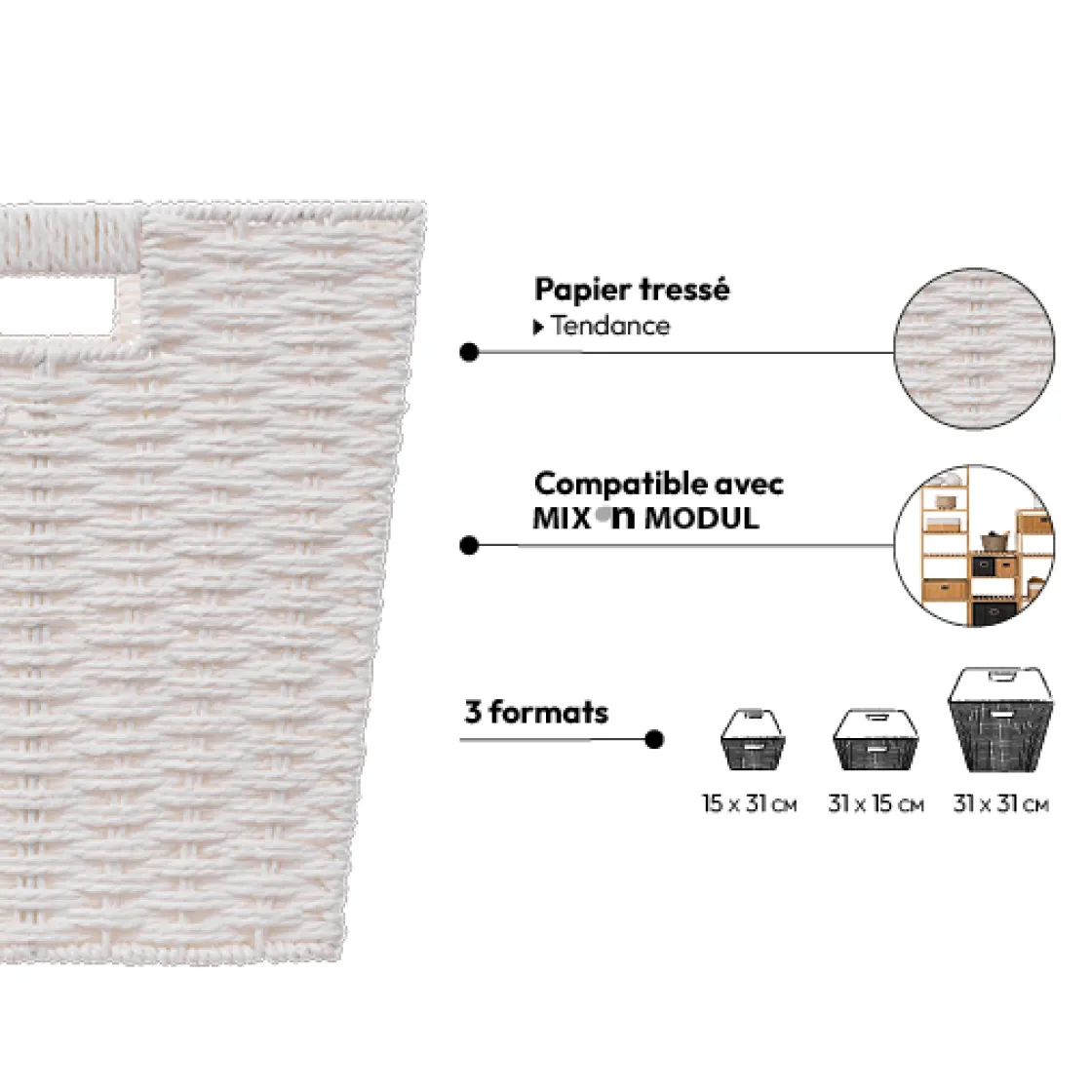 5five Panier vannerie 31x31cm, Blanc