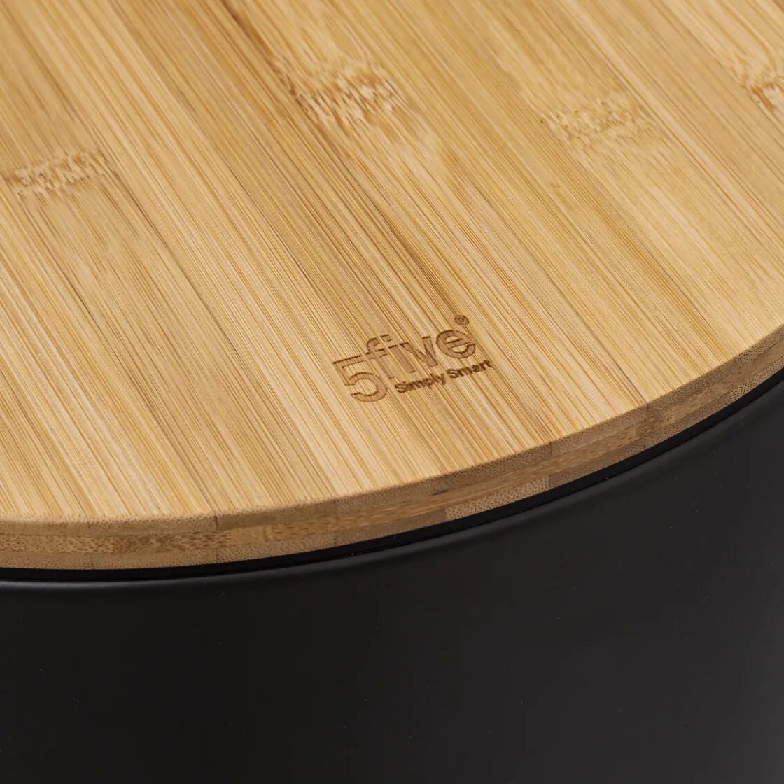 5five Poubelle ronde avec couvercle bambou 30L, Noir