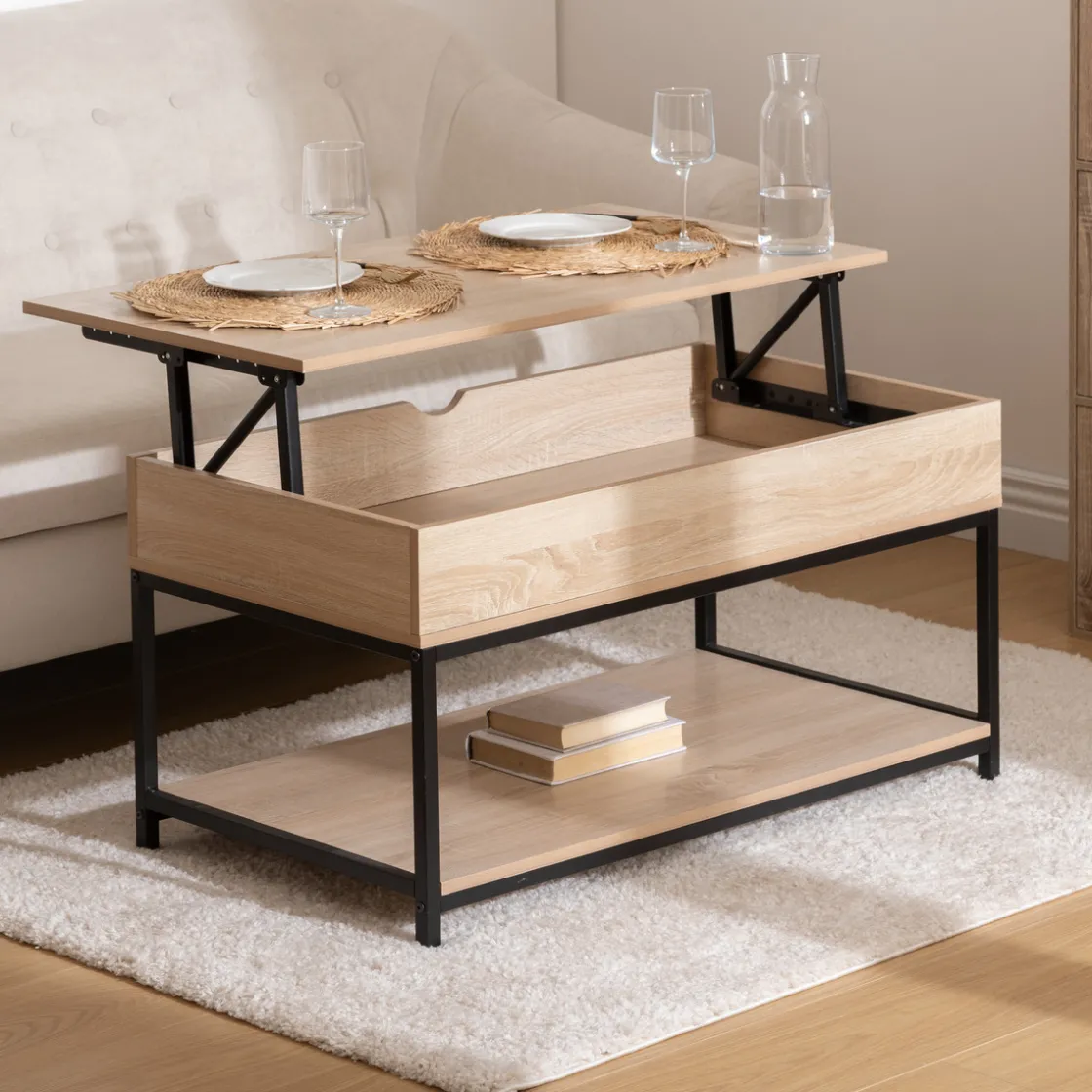 5five Table basse plateau relevable, Effet chêne naturel