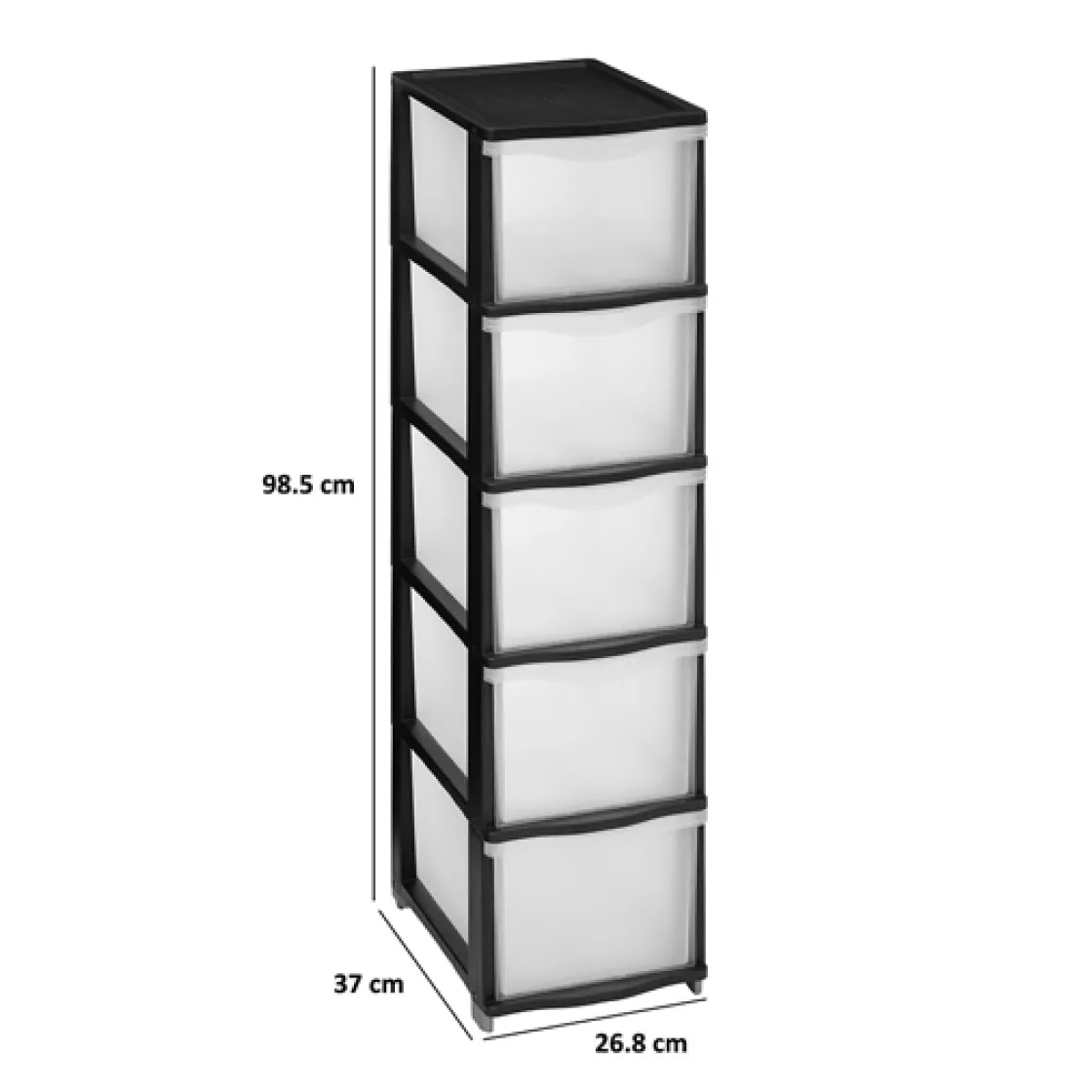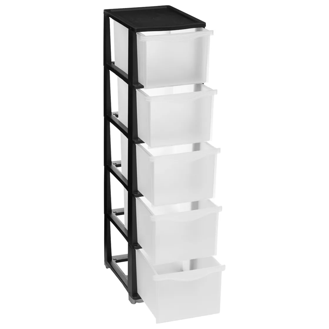 5five Tour de rangement 5 tiroirs avec roues, Noir