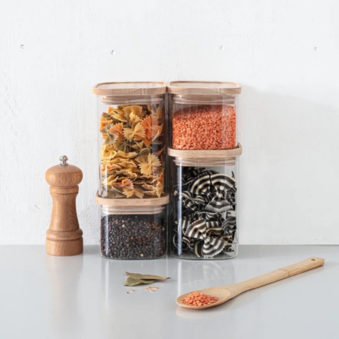 5five 4 bocaux verre empilables couvercle bois