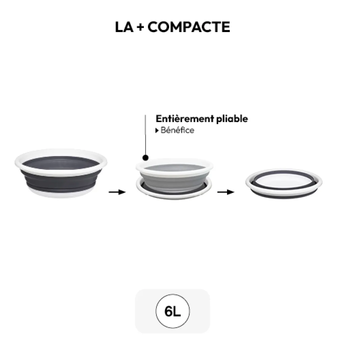 5five Bassine retractable 8L – Blanc, Gris clair