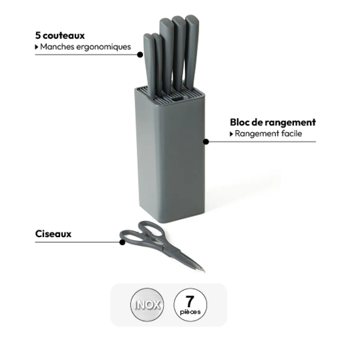 5five Bloc de 5 couteaux et ciseau, Gris