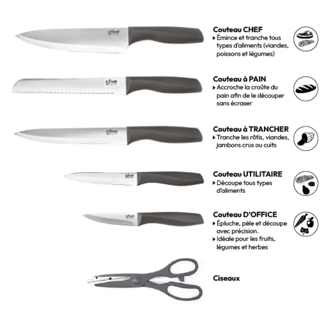 SKU: SKUP6dmoKr6xy Categories: Accessoires Cuisine, Couteau De Cuisine, Cuisine Tag: 5five Brand: 5five