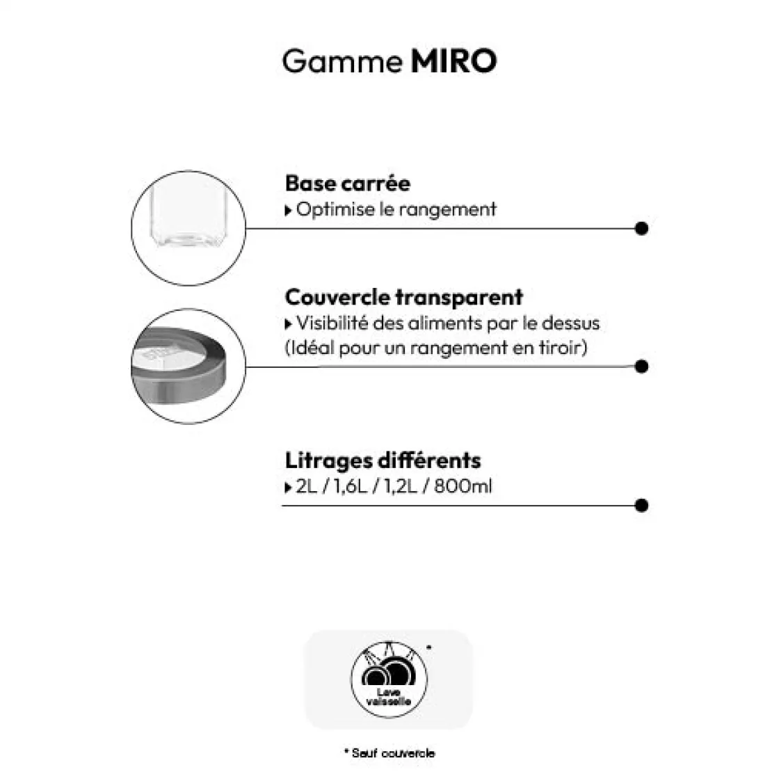 5five Bocal verre couvercle contour acier 0,8L