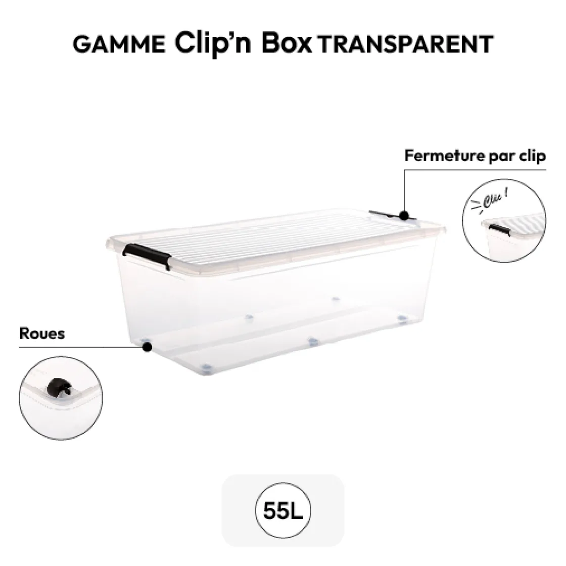 5five Boîte en plastique transparente 55L
