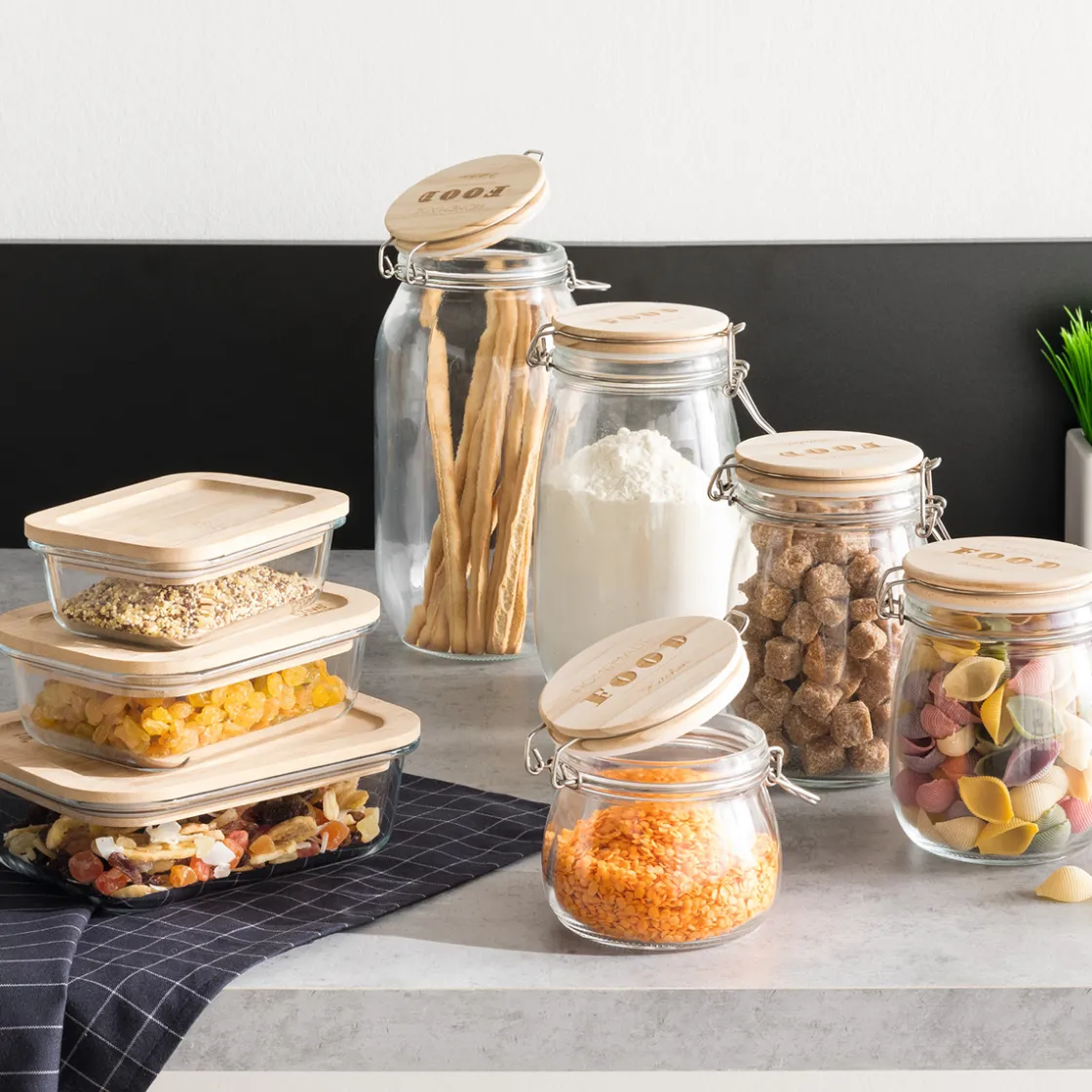 5five Lot de 6 bocaux de conservation hermétiques 0,5L à 1,5L