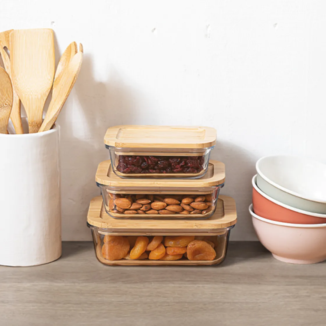 5five Boîte verre couvercle bambou 1L