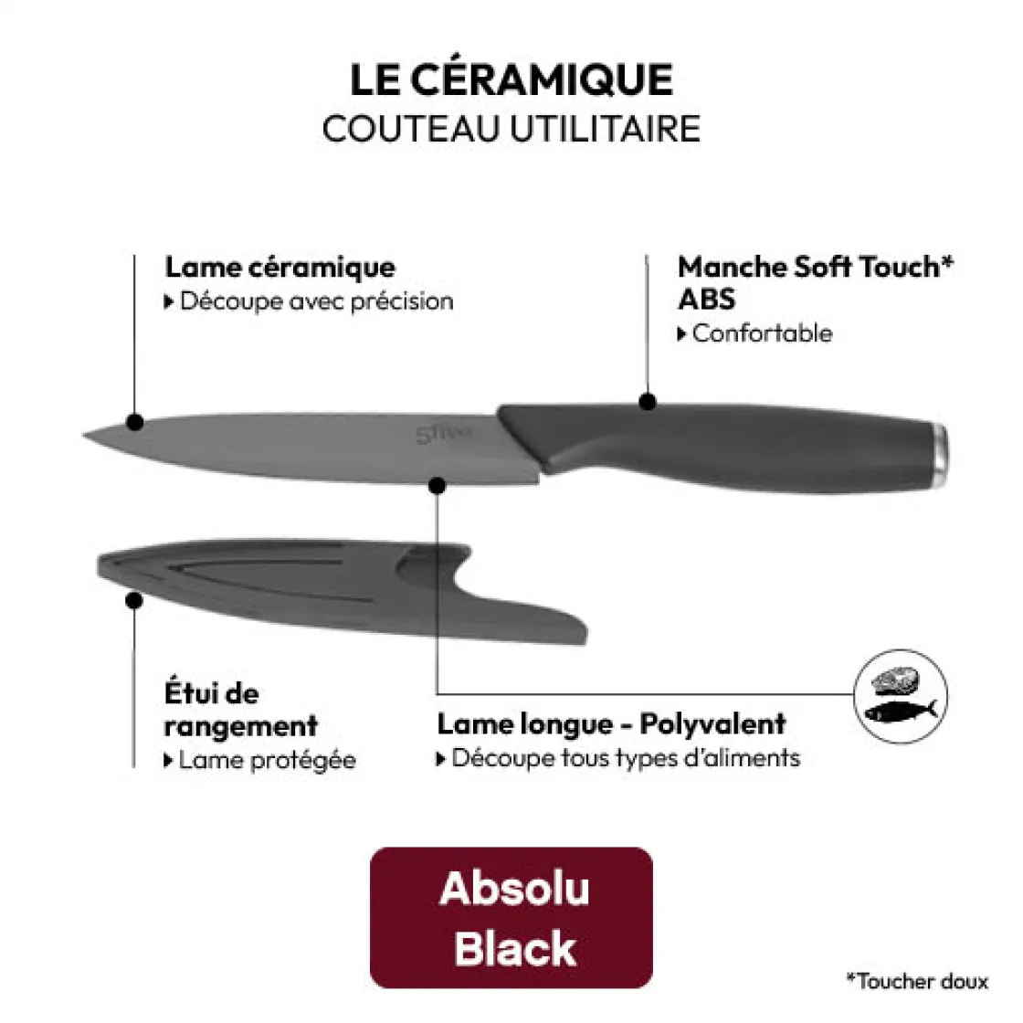 5five Couteau utilitaire céramique – lame12,5cm