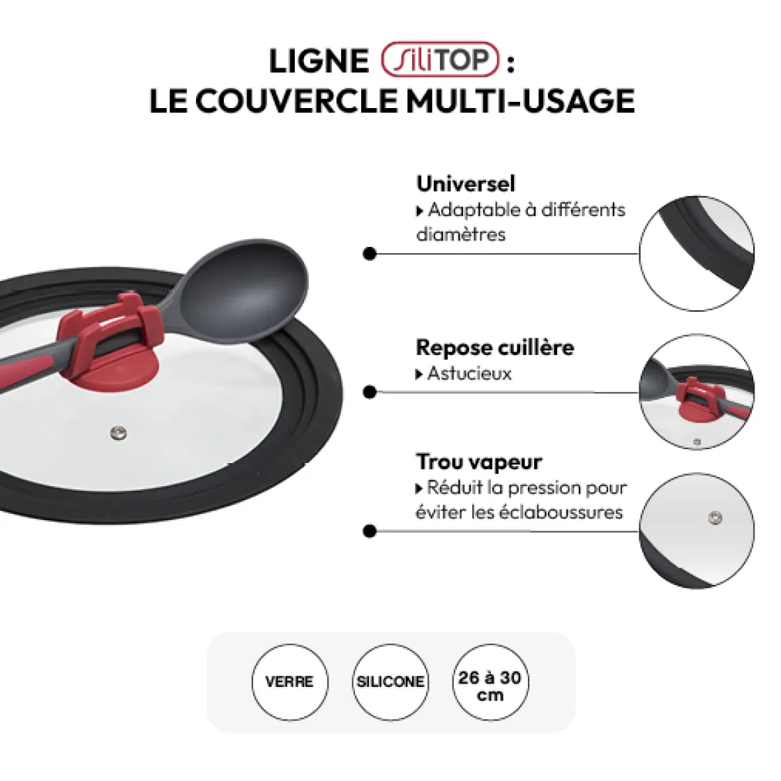 5five Couvercle en verre universel- 26/28/30cm