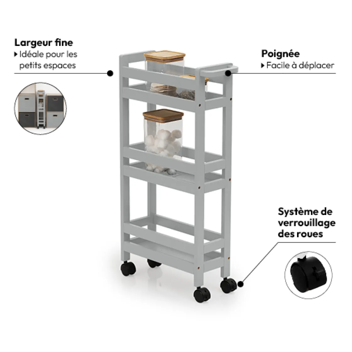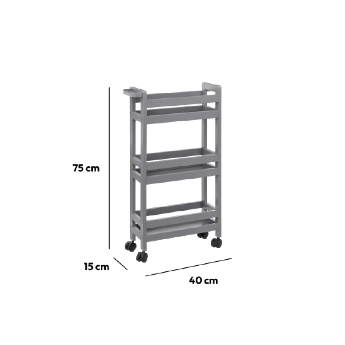 5five Desserte à roulettes 3 niveaux, Gris béton