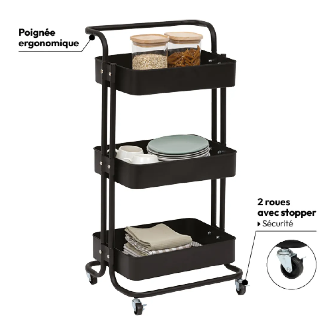 5five Desserte à roulettes 3 niveaux, Noir