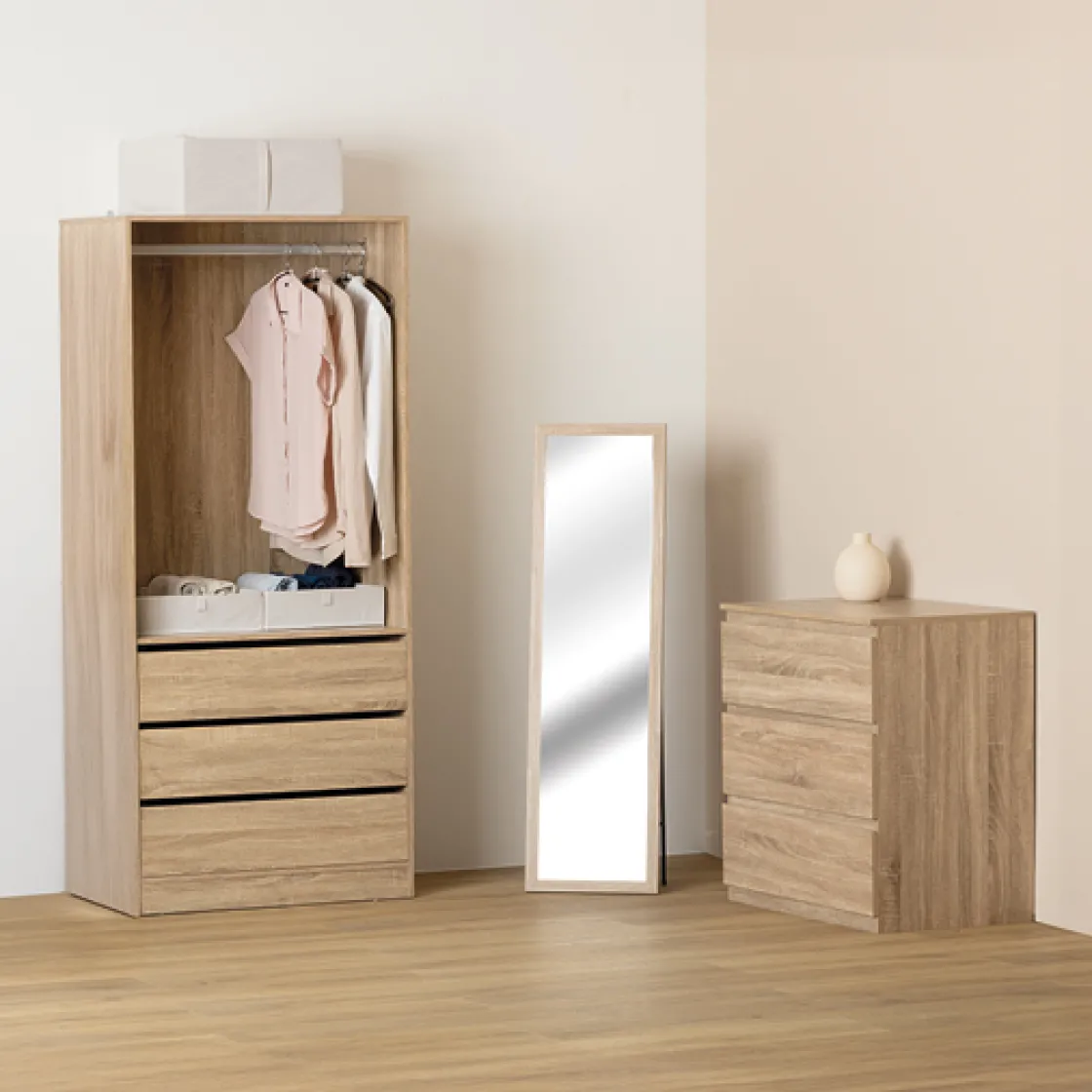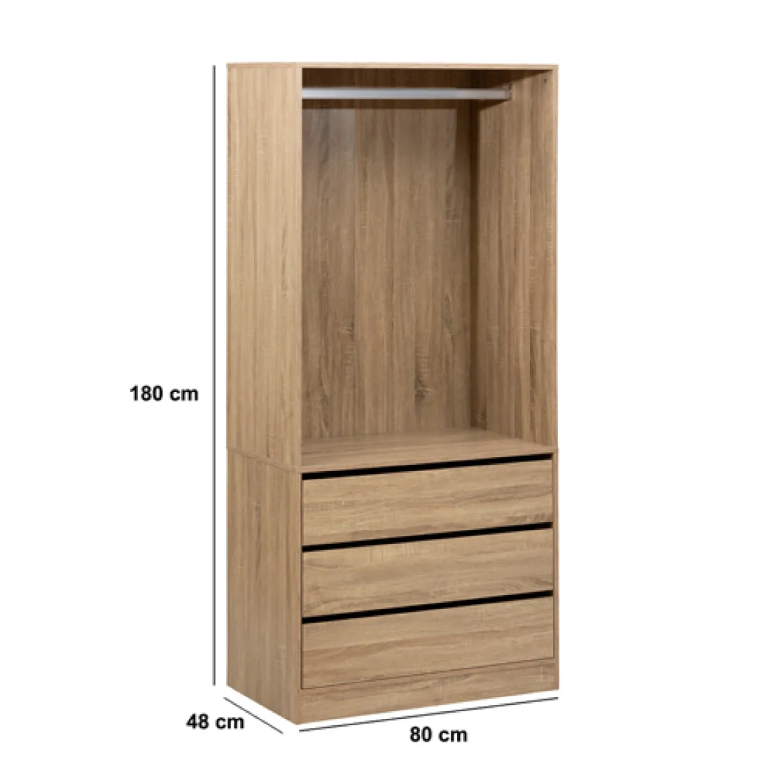 5five Dressing 3 tiroirs avec penderie, Effet bois