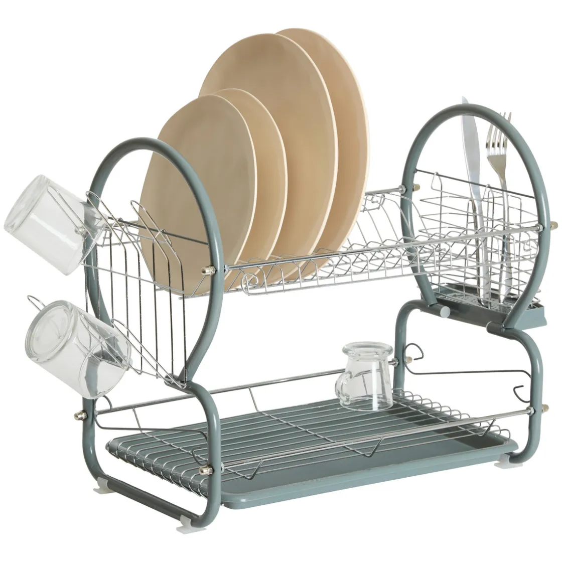 5five Égouttoir métal 2 niveaux avec plateau, Gris