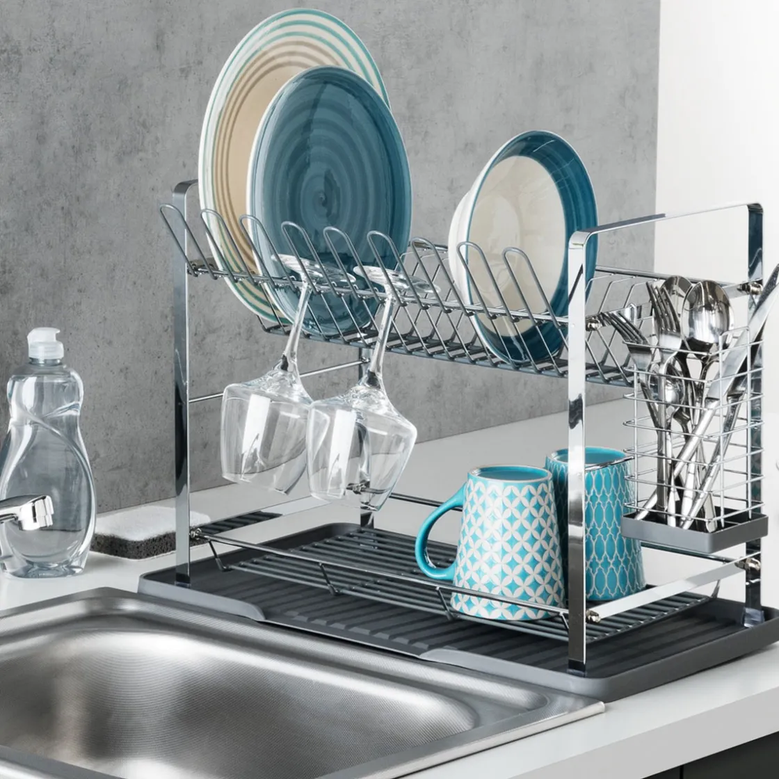 5five Égouttoir métal 2 niveaux avec plateau, Gris