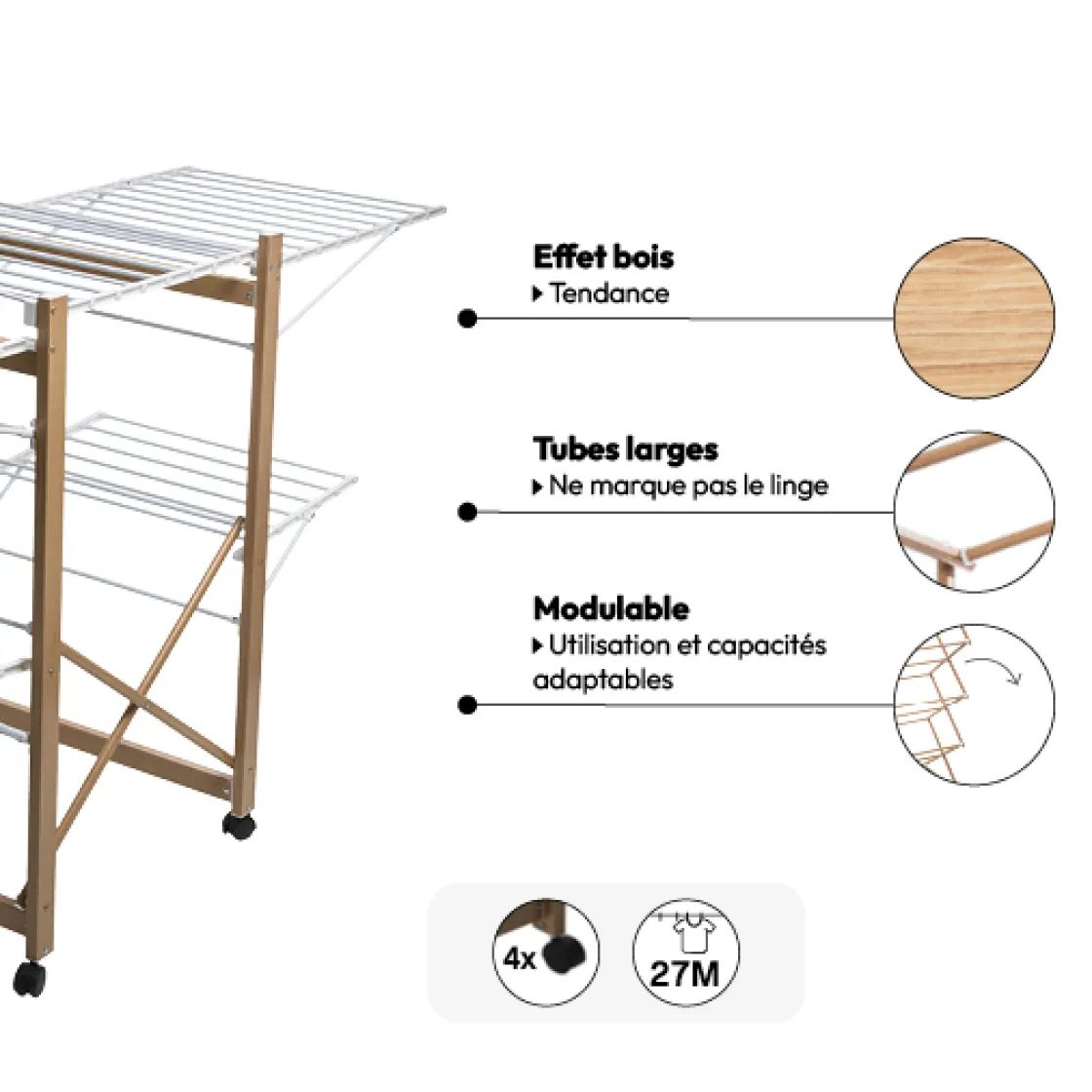 5five Étendoir à linge 4 roues 27m