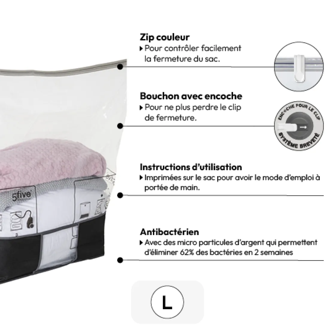 | Matière du sac compresseur | PE – Polyéthylène, PET, PETE – Poly(téréphtalate d’éthylène) |