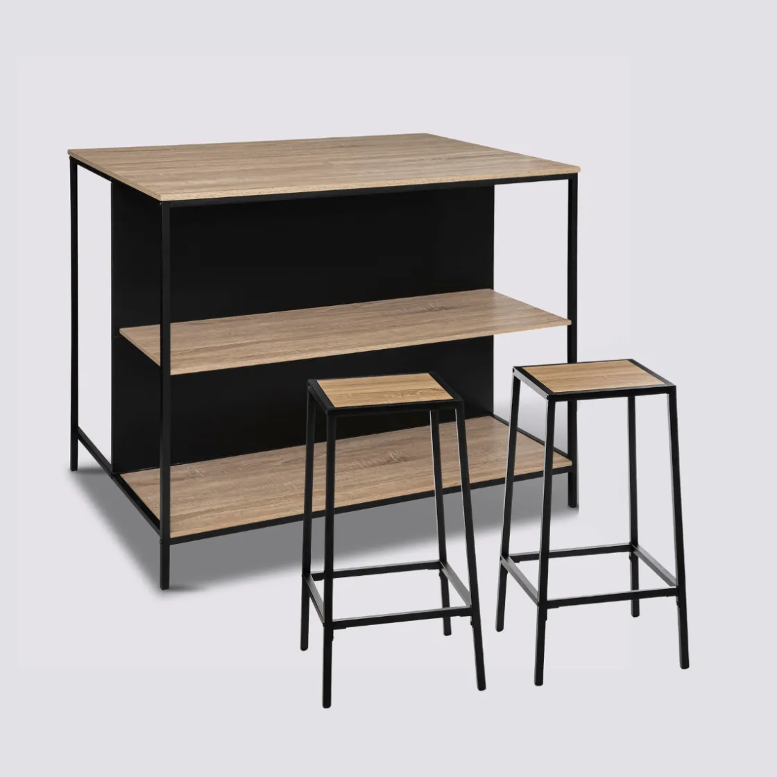 5five Ilot de bar et 2 tabourets, Effet chêne naturel