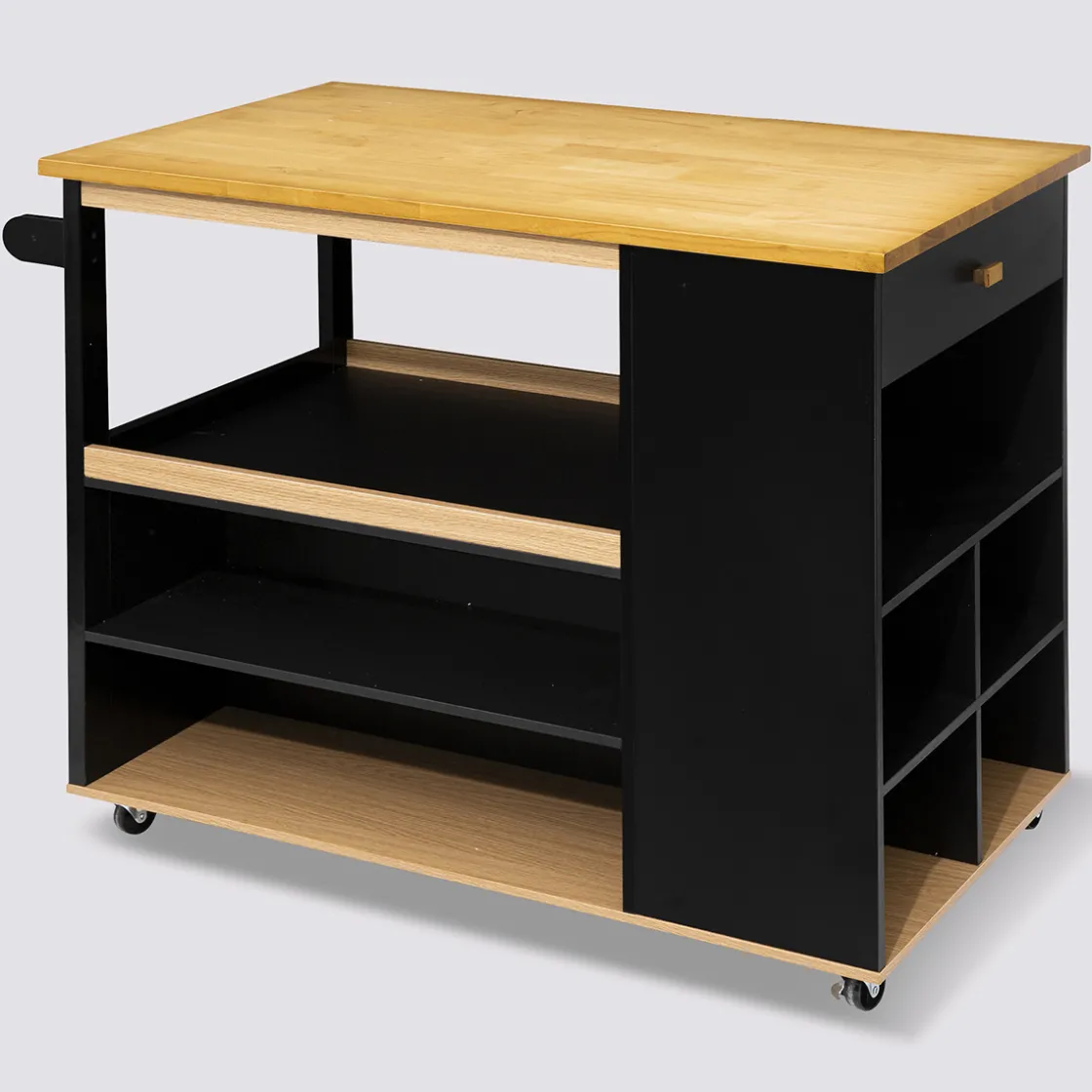 5five Ilot de cuisine à roulettes bois, Noir