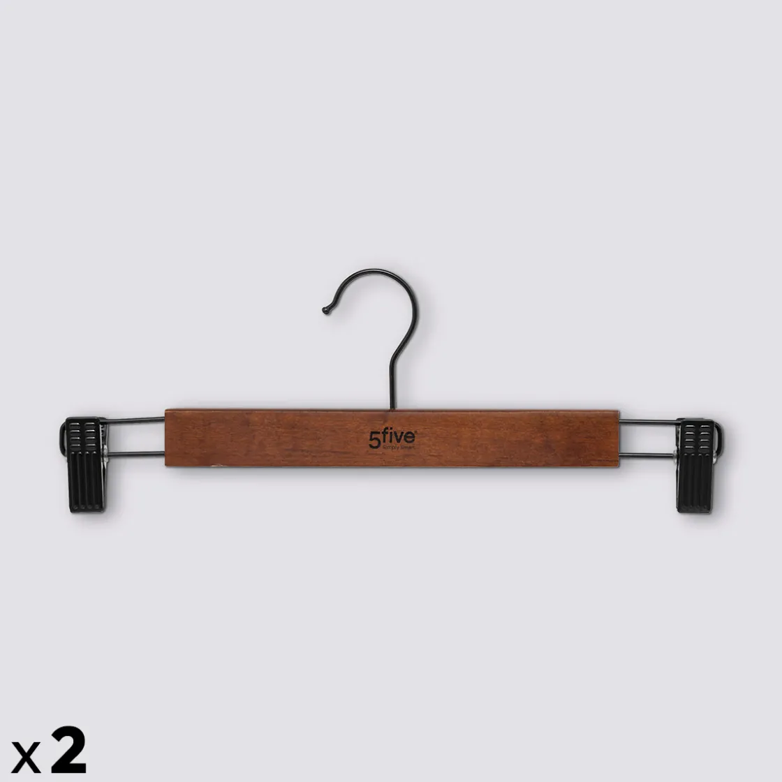 5five Lot de 2 cintres à pinces, Bois foncé
