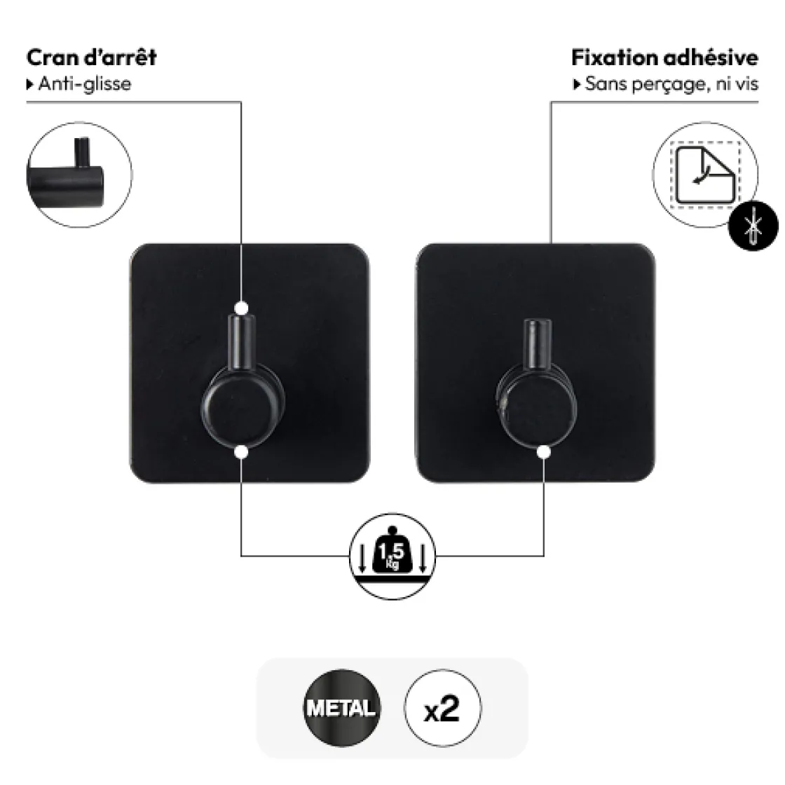 5five Lot de 2 patères adhésives 1 tête