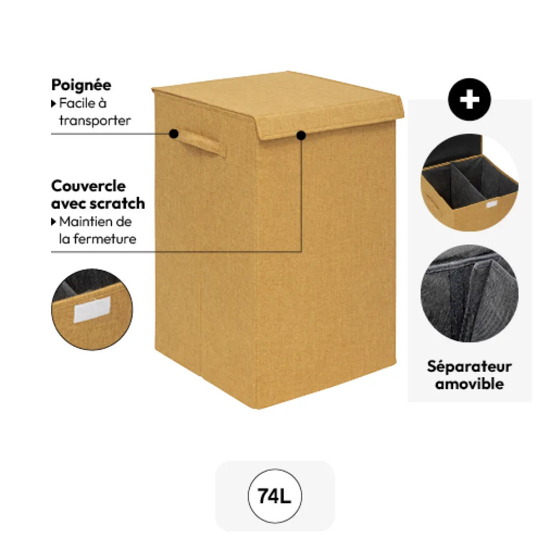5five Panier à linge 74L, Jaune moutarde