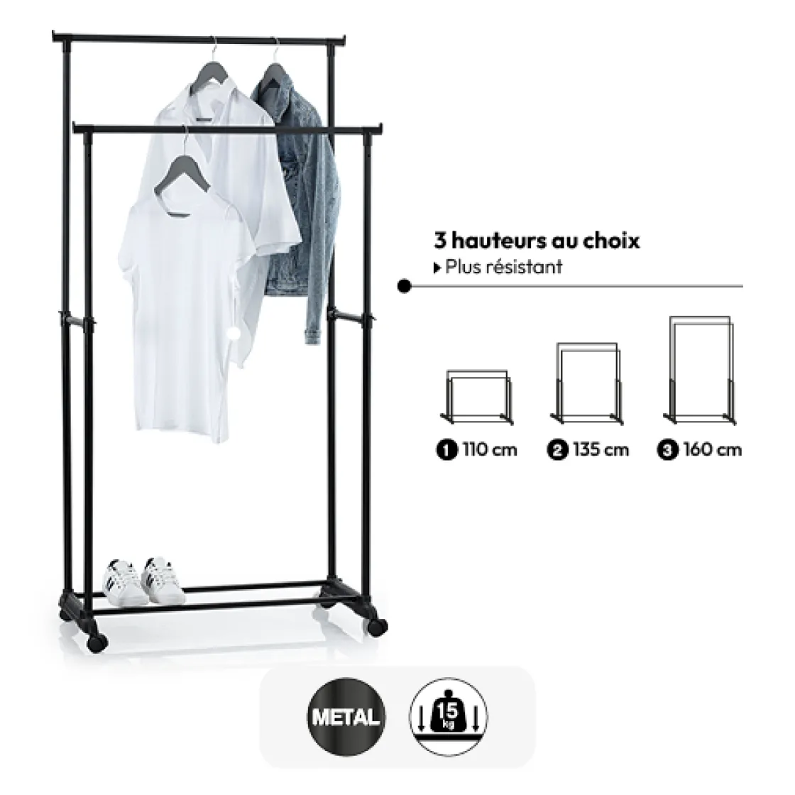 5five Portant à vêtement double à roulettes