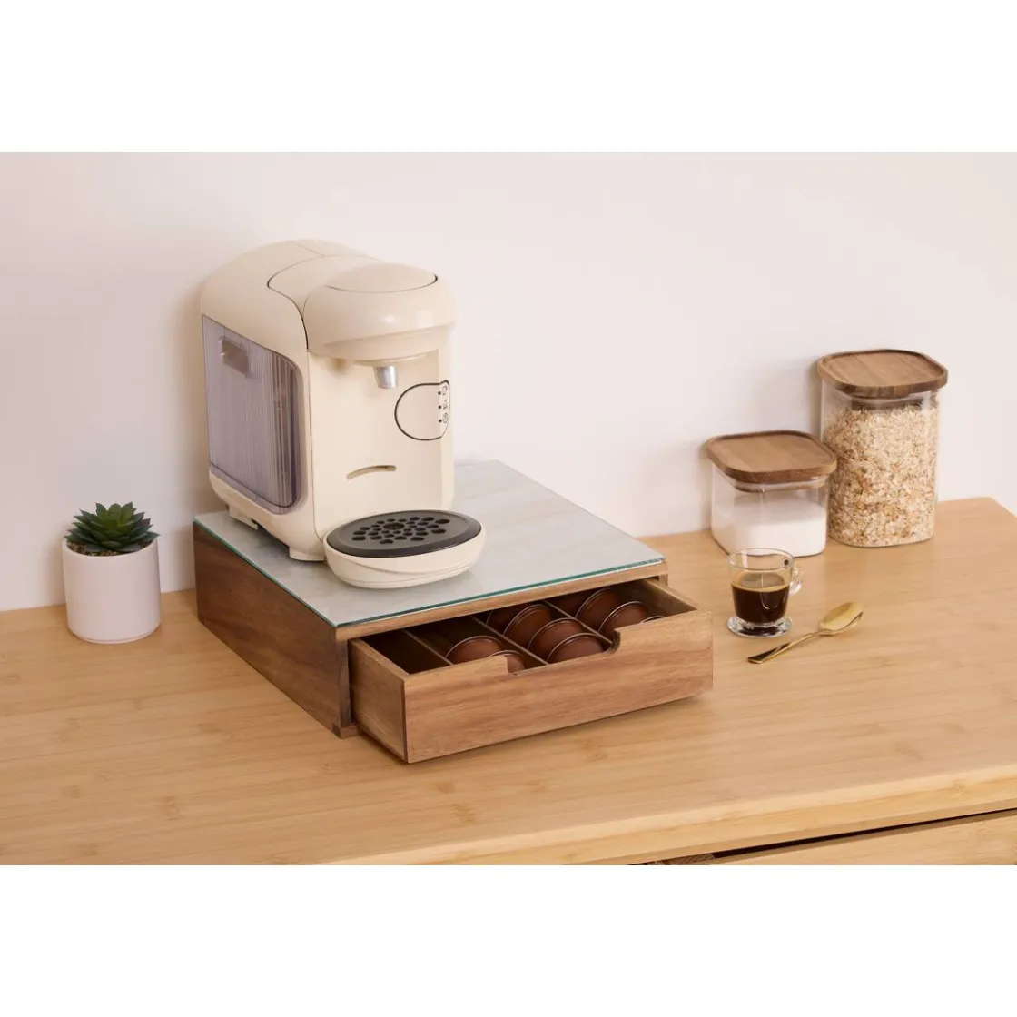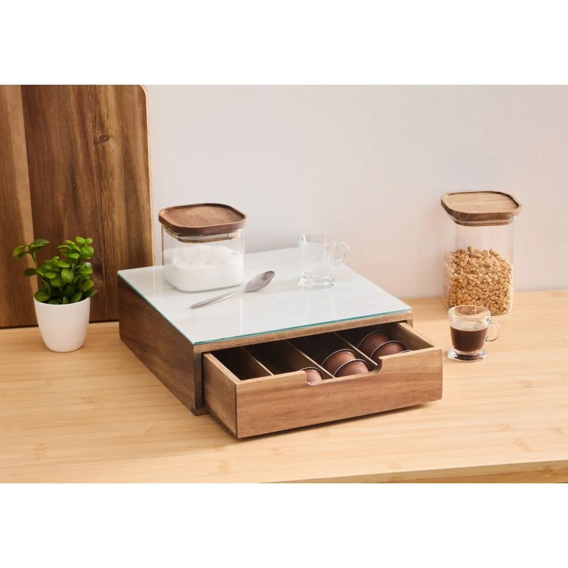 | Matière du cadre extérieur du tiroir | Acacia, Verre trempé |