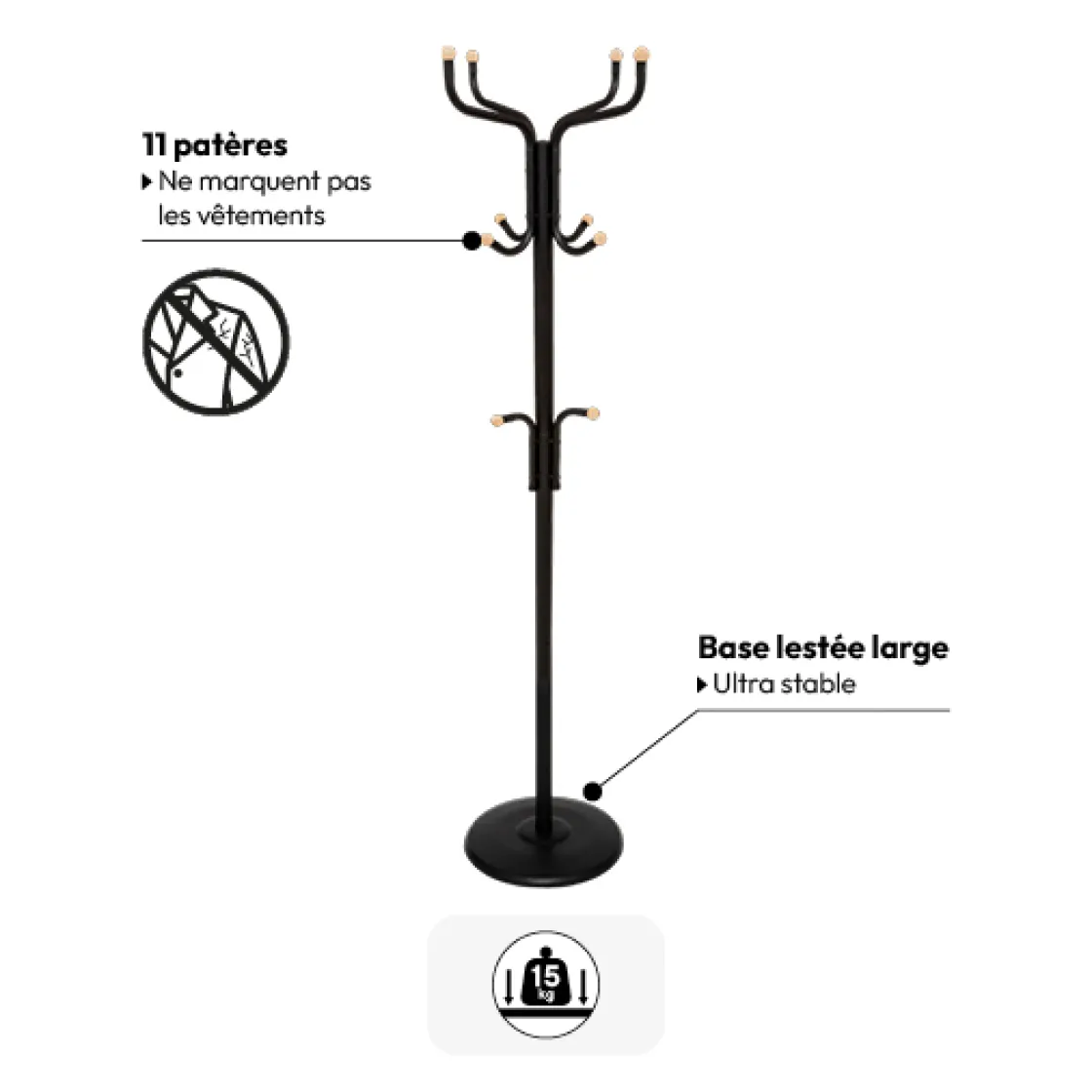 5five Porte-manteaux 11 patères 176,5cm, Noir