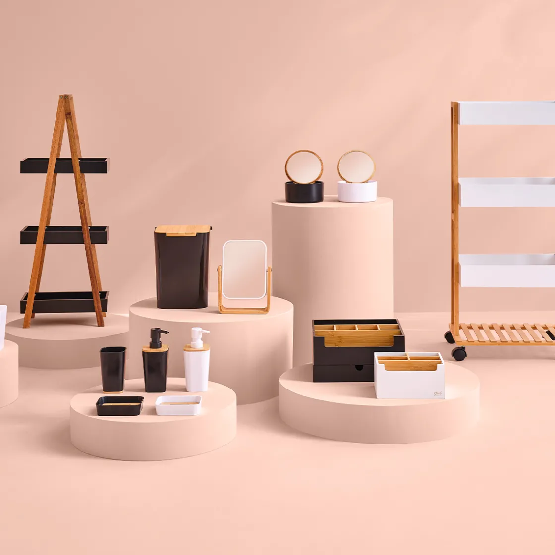 5five Poubelle à couvercle bambou 5L, Noir
