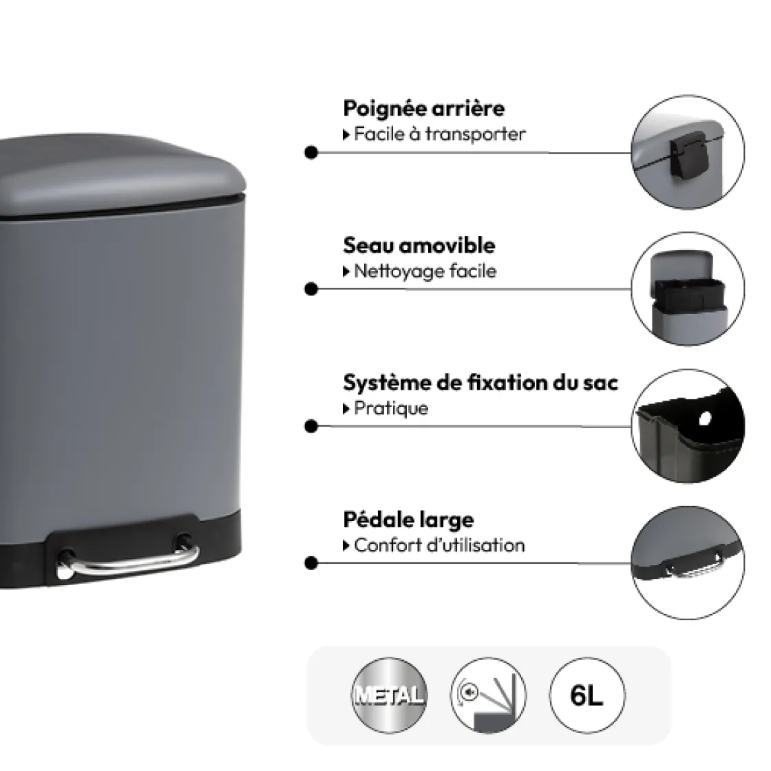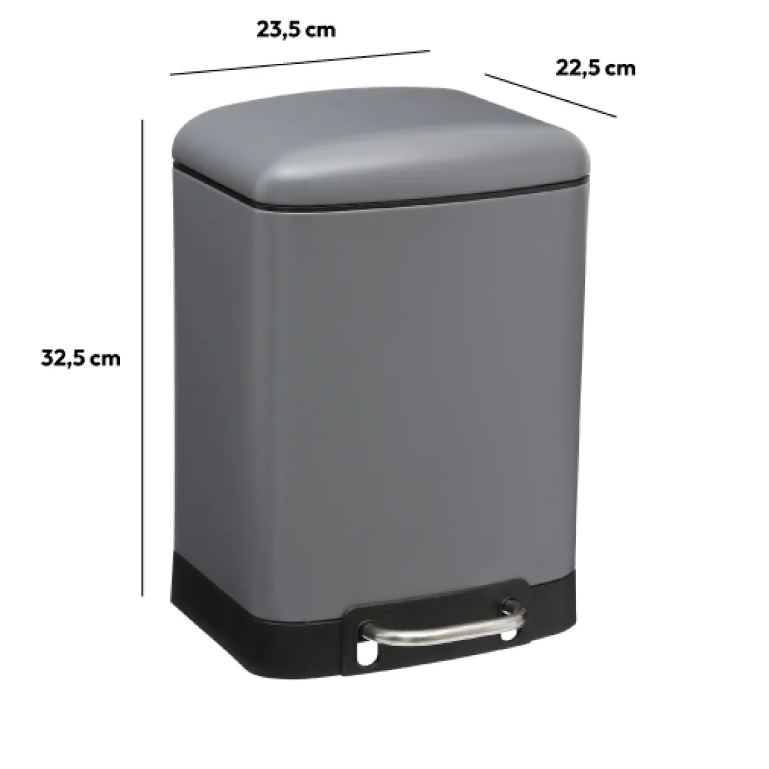 5five Poubelle rectangulaire à pédale métal 6L, Gris