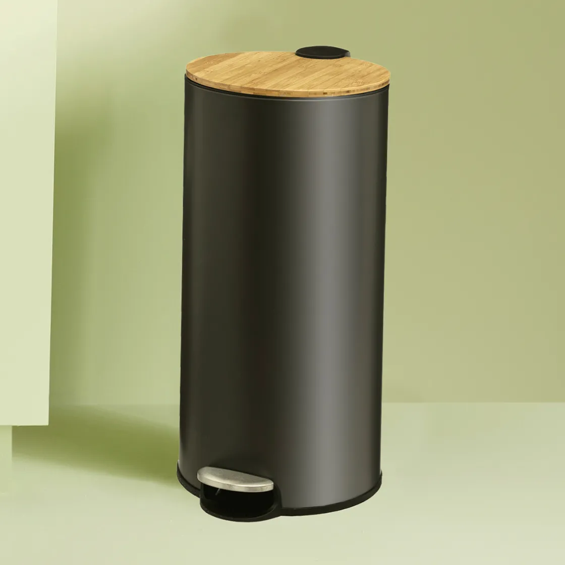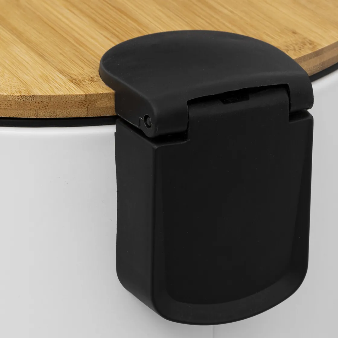 5five Poubelle ronde avec couvercle bambou 30L, Blanc