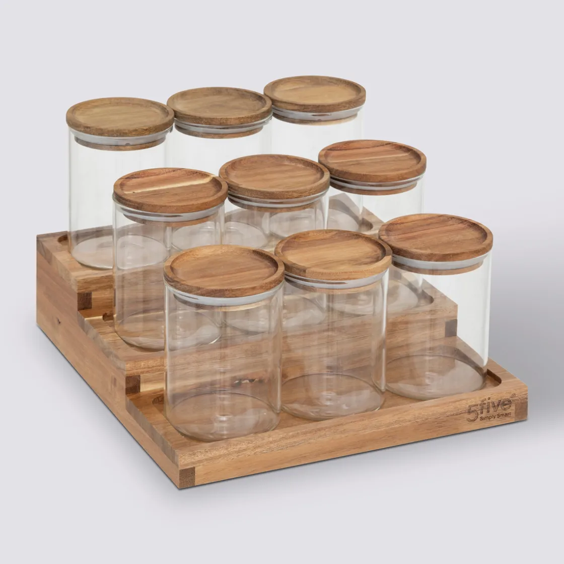 5five Présentoir à épices avec lot de 9 bocaux, Acacia