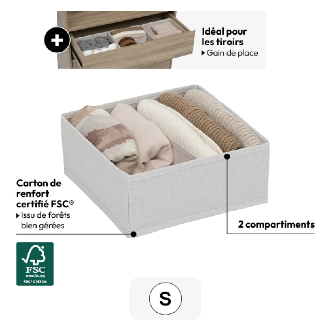 5five Rangement tiroir 2 compartiments, Beige