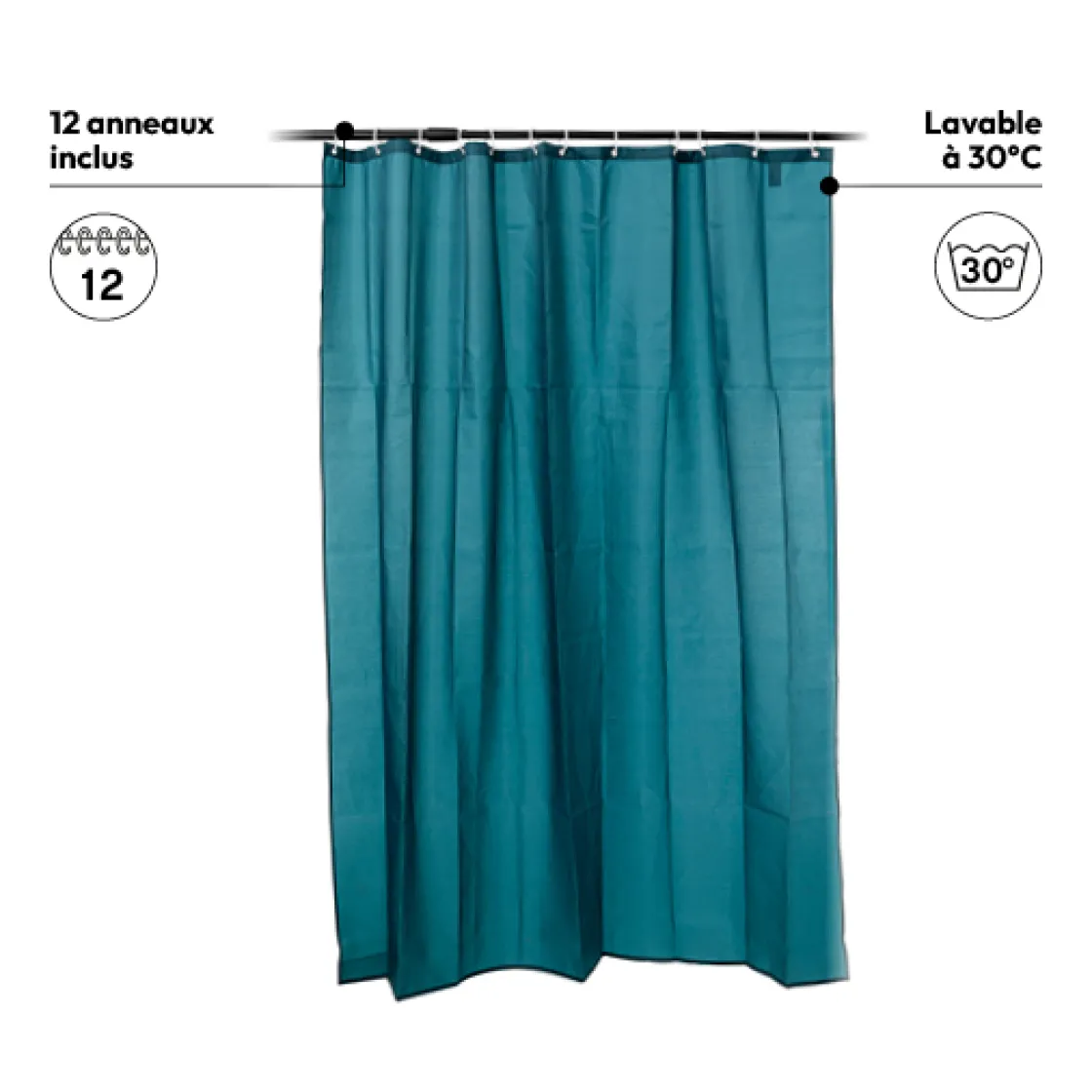 5five Rideau de douche 180x200cm, Bleu pétrole