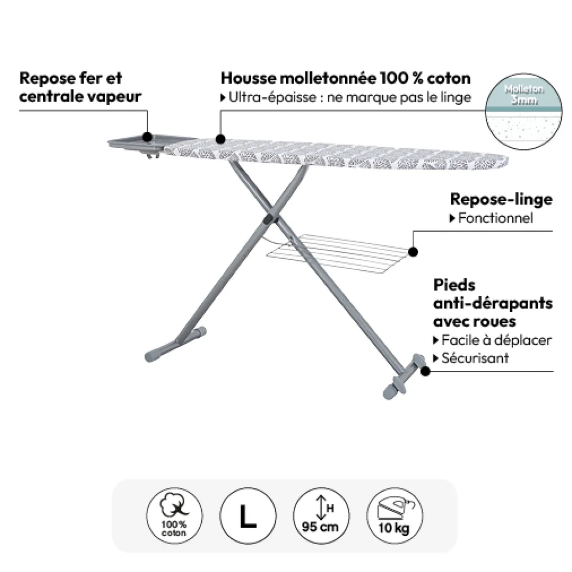 | Matière de la table à repasser | Acier |