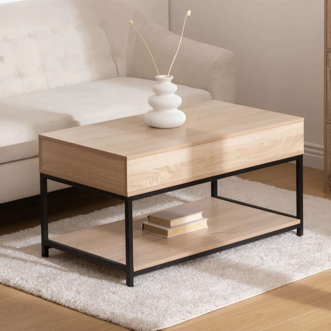 5five Table basse plateau relevable, Effet chêne naturel