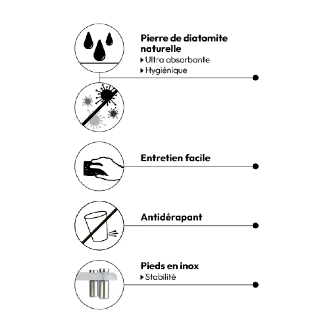 | Matière du tapis | Diatomite, Acier inoxydable |