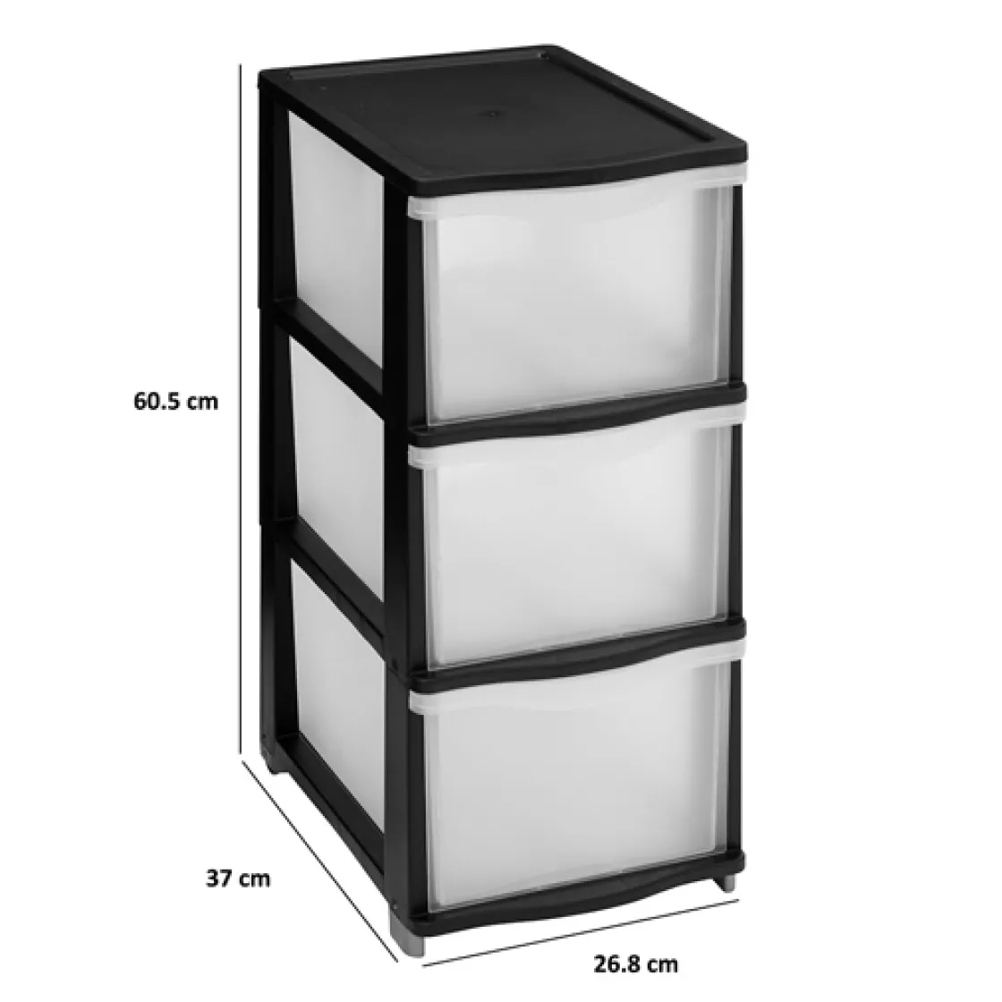 5five Tour de rangement 3 tiroirs avec roues, Noir