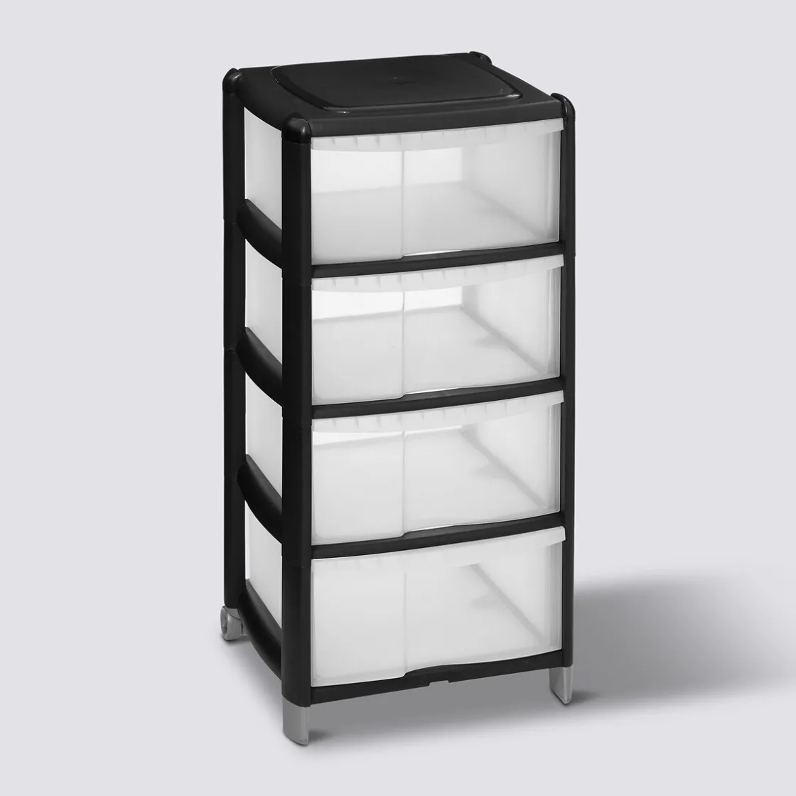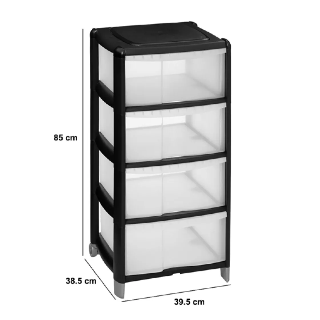 5five Tour de rangement 4 tiroirs avec roues, Noir